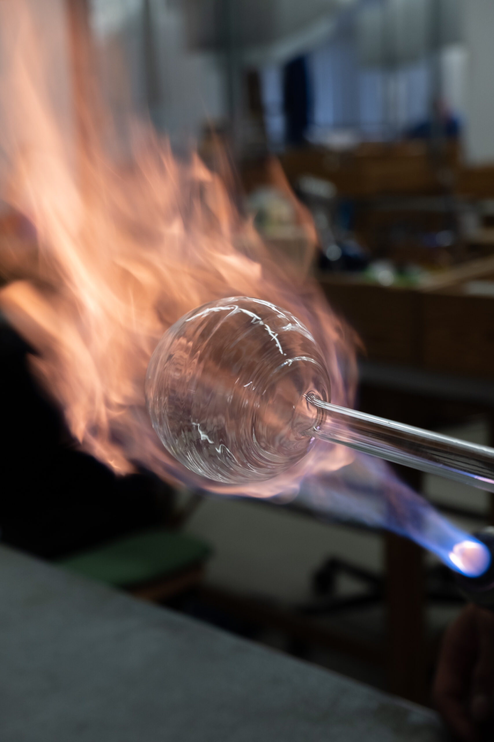 Die Arbeit konzentriert sich auf explorative Formstudien, die neue Bewegungen, Mechanismen und Werkzeuge zeigen, welche im Kontrast zur traditionellen Arbeitsweise der kunsthandwerklichen Glasbläser*innen aus Lauscha stehen. Ziel der Zusammenarbeit war es, gemeinsam zu experimentieren und spannende Verhaltensweisen des Werkstoffs Glas zu entdecken. Die Ergebnisse der Arbeit sind neben den Formstudien zwei verschiedene Artefakt-Familien: Boules und Cumulie. Sie präsentieren mutige formgebende Verfahrensweisen und experimentierfreudige Ansätze in der Verarbeitung von Glas vor einem Brenner. Die Artefakte dienen als Beispiele, wie Experimente mit Glas, neuen Werkzeugen und mutigen Gesten in kreativen Produkt- oder Objektentwürfen Anwendungen finden können.